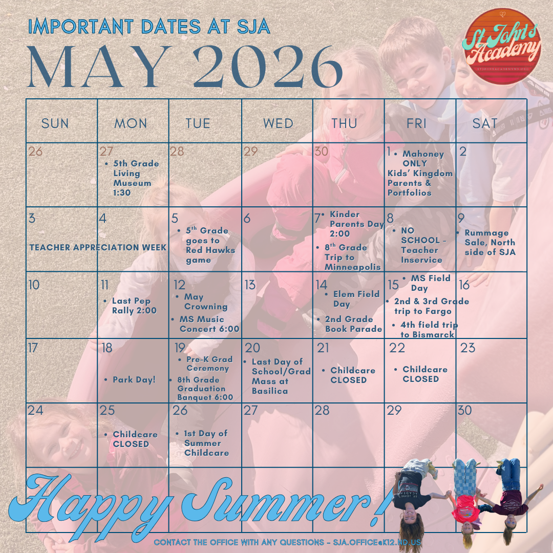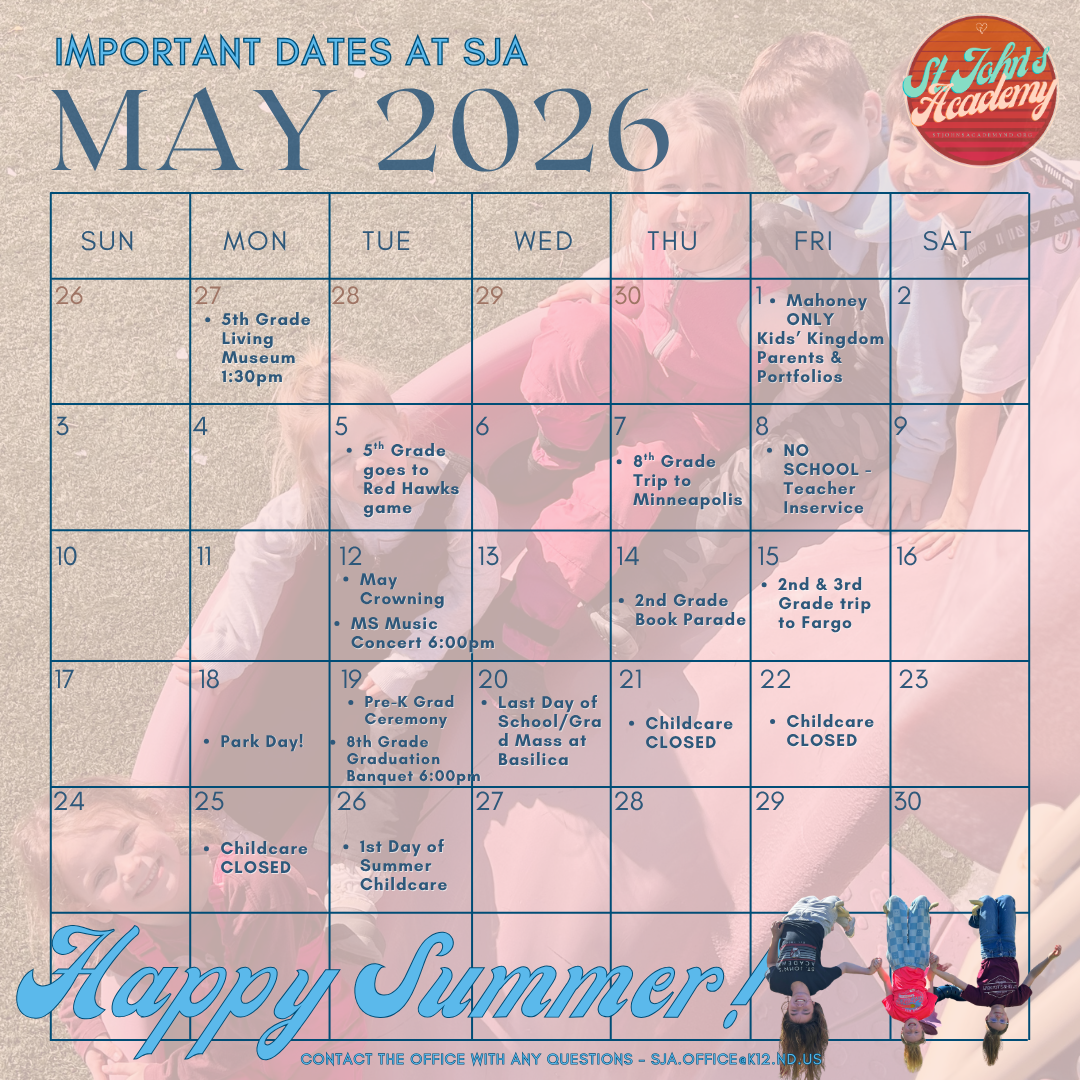 St. John's Academy truly prepares students for academic success and also for a life dedicated to faith and service. We are grateful for the lasting impact the teachers and staff have had on our children's lives and future success."